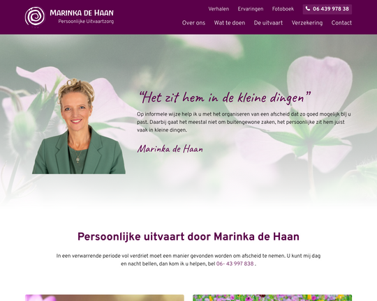 Marinka de Haan heeft bijna twintig jaar ervaring in het begeleiden van uitvaarten, en haar expertise is duidelijk zichtbaar in de wijze waarop zij families bijstaat. Ze biedt volledige begeleiding bij overlijden en zorgt ervoor dat alle aspecten van de uitvaart naar wens worden uitgevoerd. Haar betrokkenheid en betrouwbaarheid worden vaak geroemd door degenen die haar diensten hebben ervaren, zoals blijkt uit diverse ervaringen en verhalen van tevreden klanten.